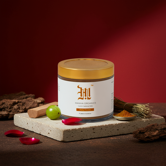 Peety is a sacred blend of herbs and roots once used by Cutchi brides before their wedding, symbolizing purity, care and natural radiance. We honor this heritage by reviving the same essence, connecting ancient wisdom with modern organic care.